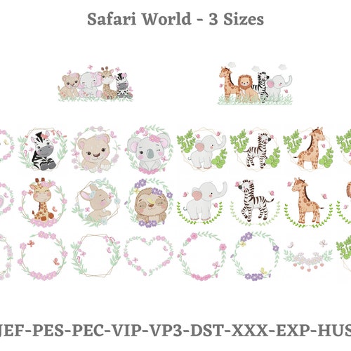 Safari World Embroidery Design Animals Machine Embroidery Etsy